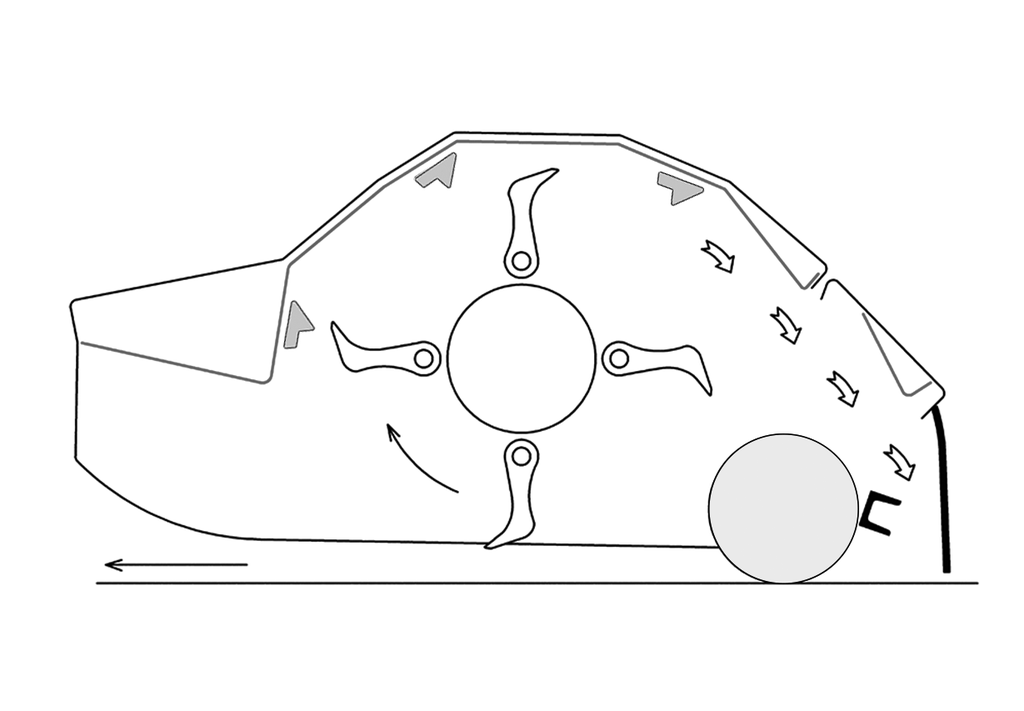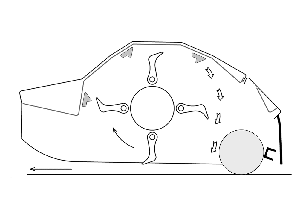 - Во время мульчирования специальные массивные цепы из кованой стали развивают турбулентность воздуха и создают разрежение, тем самым способствуя отрыву массы от земли.