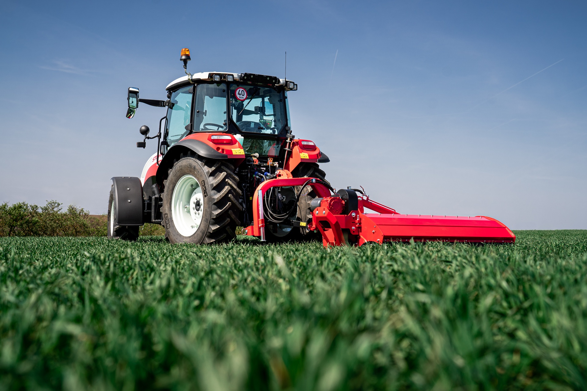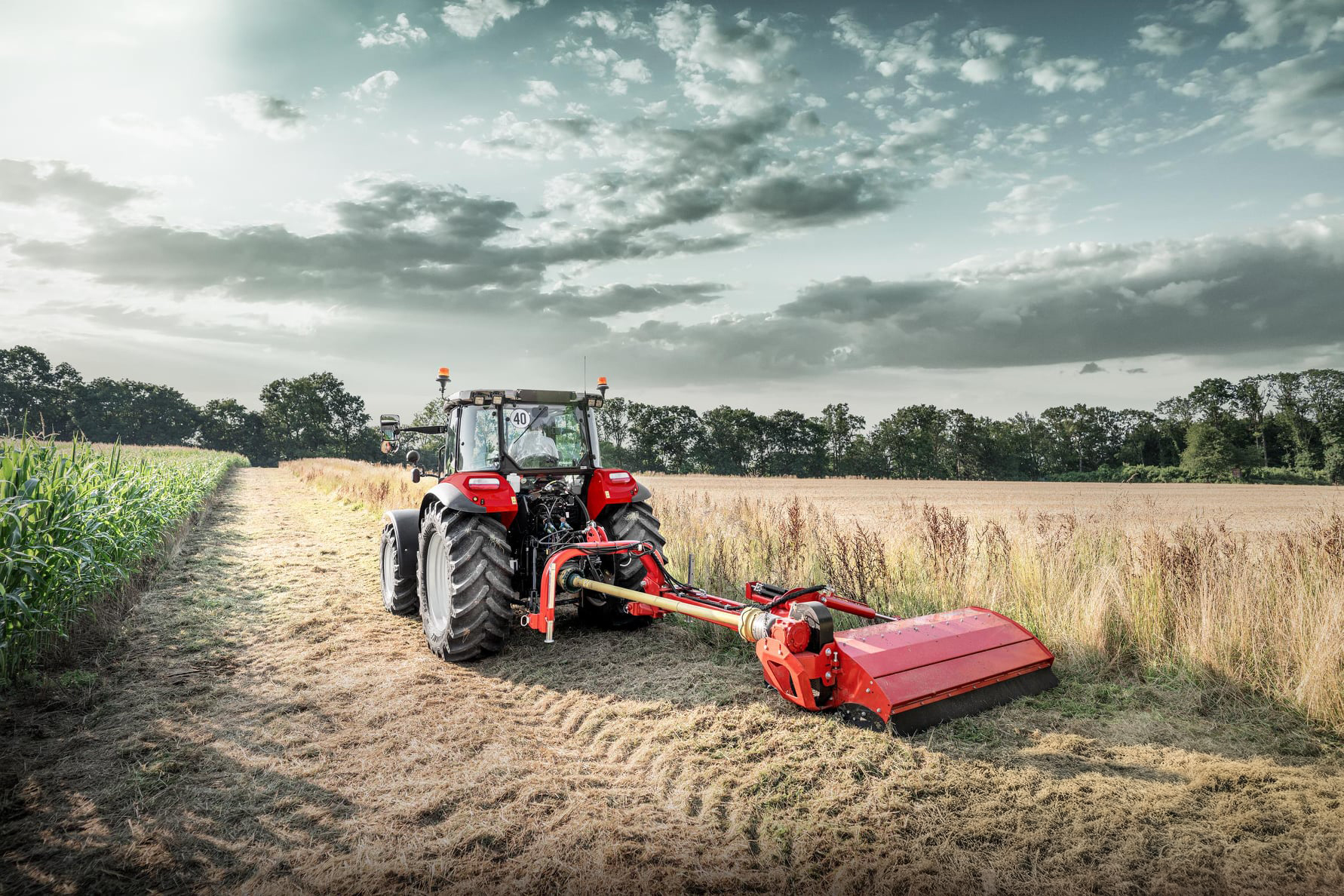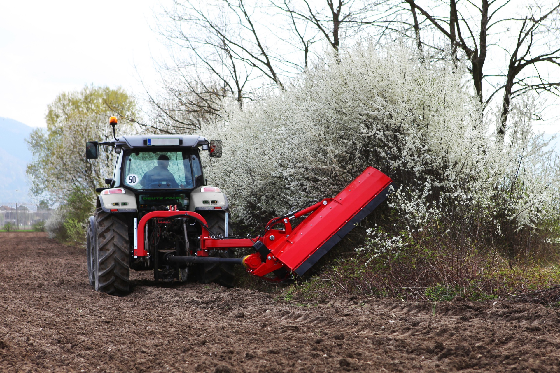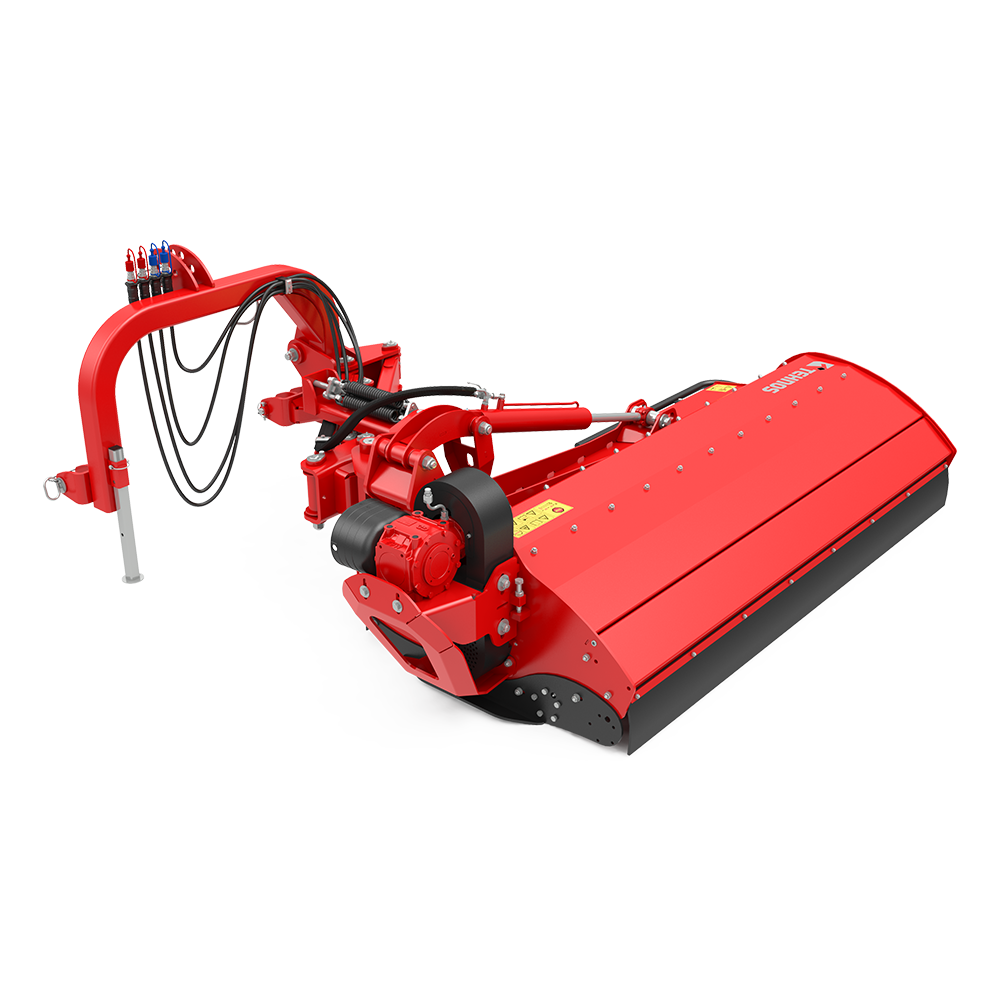 Функциональное соединение предназначено для буксировки косилки-измельчителя с молотковым аппаратом сзади и сбоку трактора с диапазоном наклона +90° вверх и -60° вниз. Косилку- измельчитель с боковым цеповым аппаратом можно подключить к тракторному трехточечному соединению II-й и III-й к атегорий. Встроенная муфта свободного хода предотвращает повреждение машины и коробки передач. Косилка-измельчитель с боковым цеповым аппаратом отличается от других универсальных косилок-измельчителей с цеповым аппаратом иным размещением коробки передач и параллелограммом, которые были разработаны для реализации горизонтального гидравлического смещения. Специальное навесное орудие с гидравлическим цилиндром предназначено для подъема/опускания навесного орудия. Несмотря на положение пластин параллелограмма при мульчировании, предохранительный механизм обеспечивает эквивалентную защиту и одновременный частичный подъeм косилки-измельчителя с цеповым аппаратом в случае еe столкновения с препятствиями.